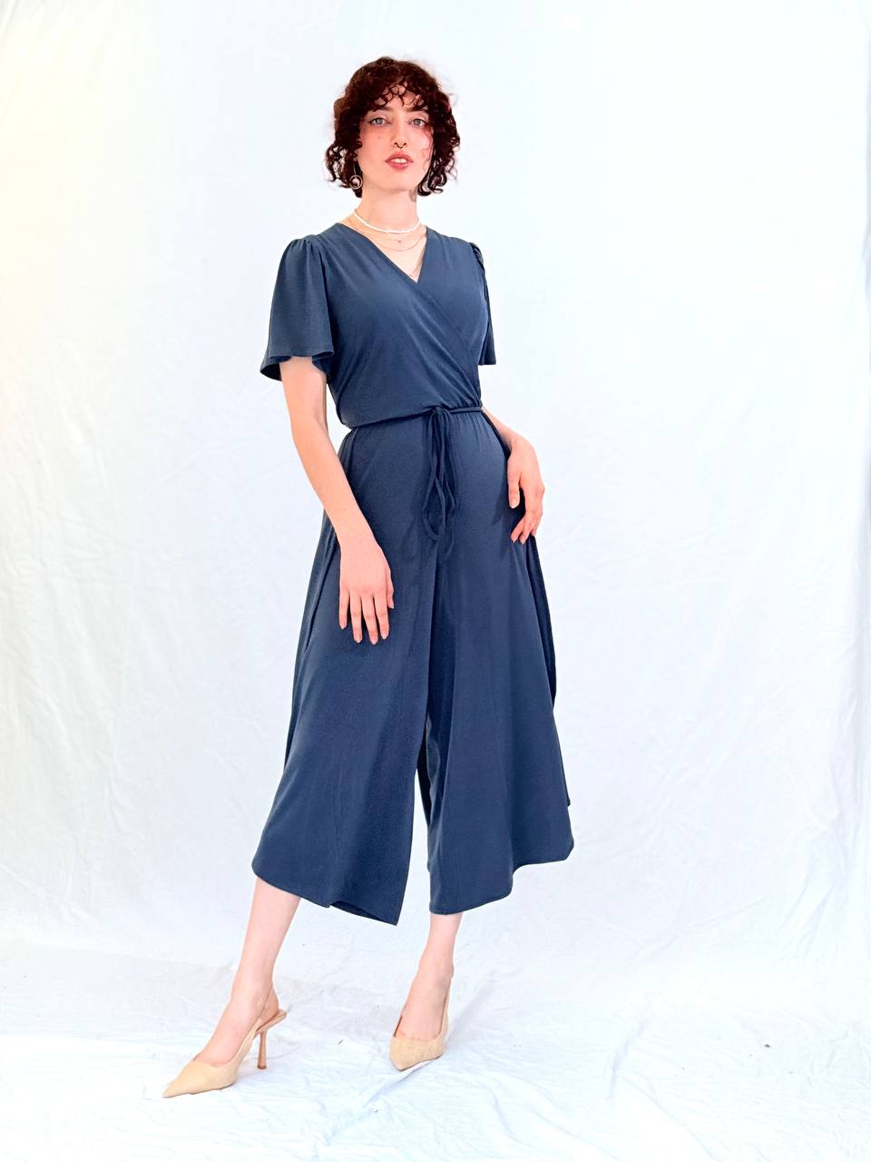 אוברול מבד רך ונעים למגע, עם חלק עליון בגזרת מעטפת שמחמיאה לכל מבנה גוף.