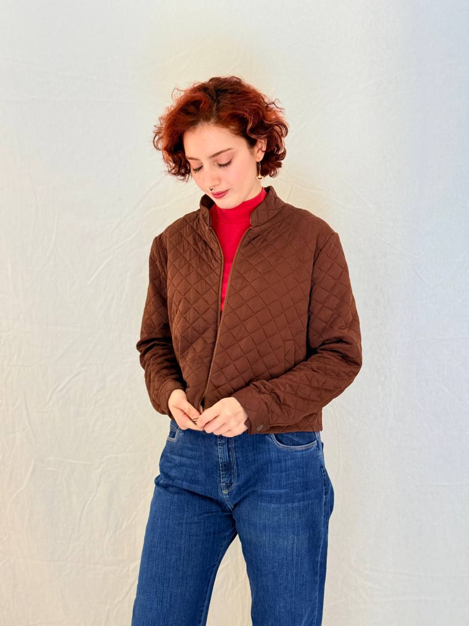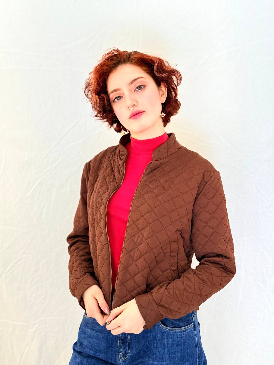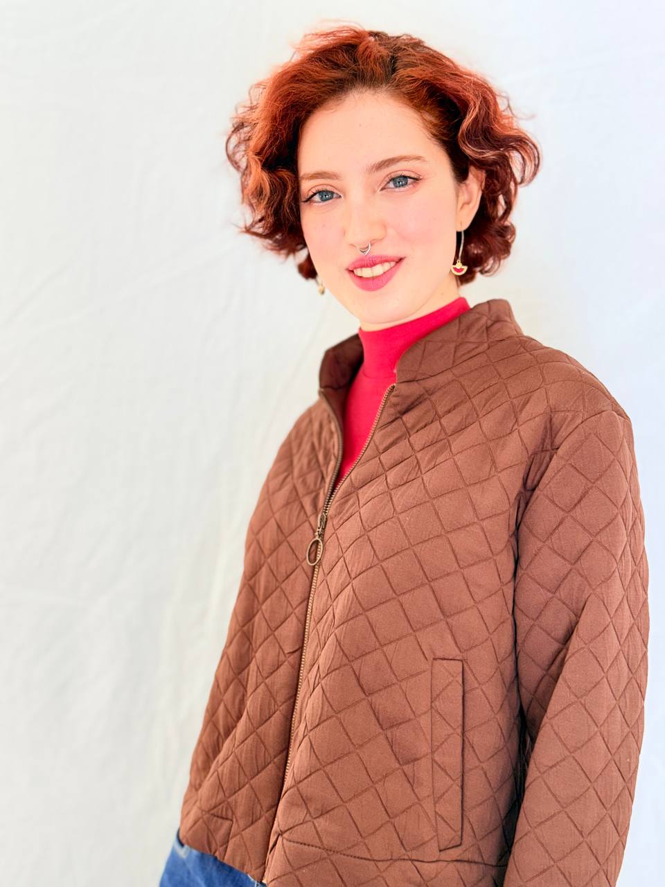 ג׳קט קליל ונעים בגזרה שמדגישה בעדינות את קו המותן. עשוי בד קווילט רך, עם רוכסן קדמי וצווארון עומד למראה נקי ומסודר. מושלם ליומיום ולשכבות בחורף.