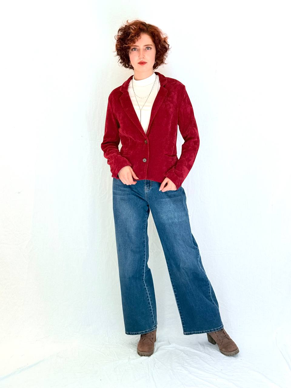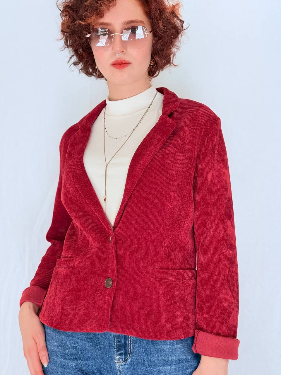 ג׳קט מחוייט מבד דמוי-קורדרוי נעים במיוחד.