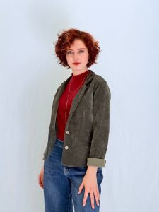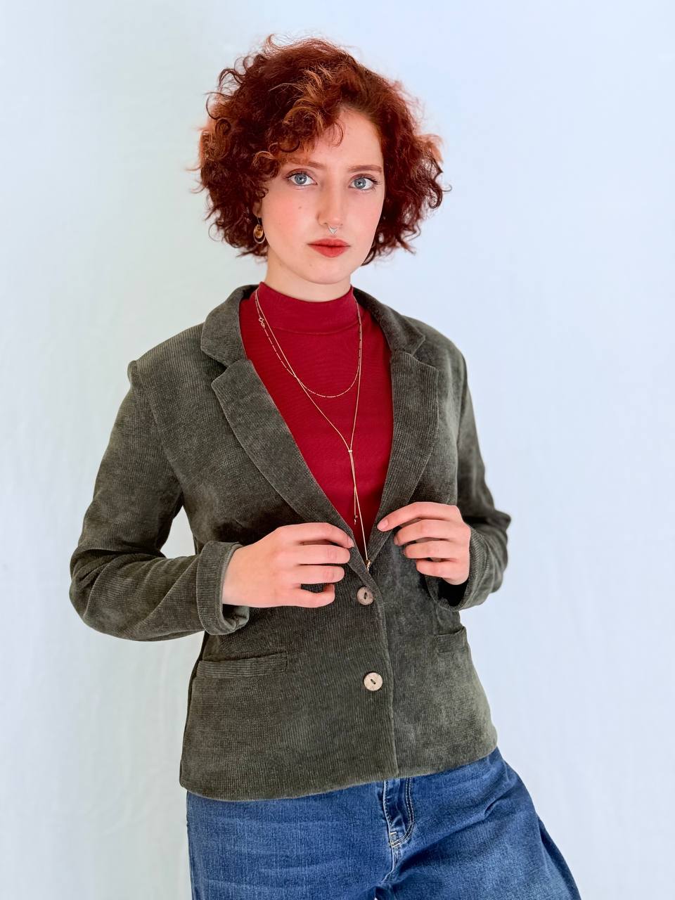 ג׳קט מחוייט מבד דמוי-קורדרוי נעים במיוחד.