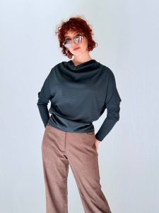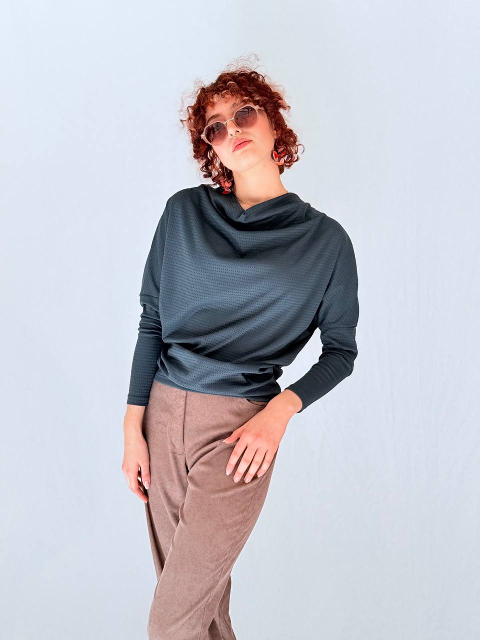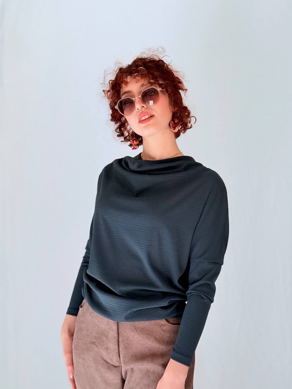 שרוולים ארוכים וקווים נקיים מאפשרים שילוב קל עם מכנסיים מחויטים או יומיומיים.