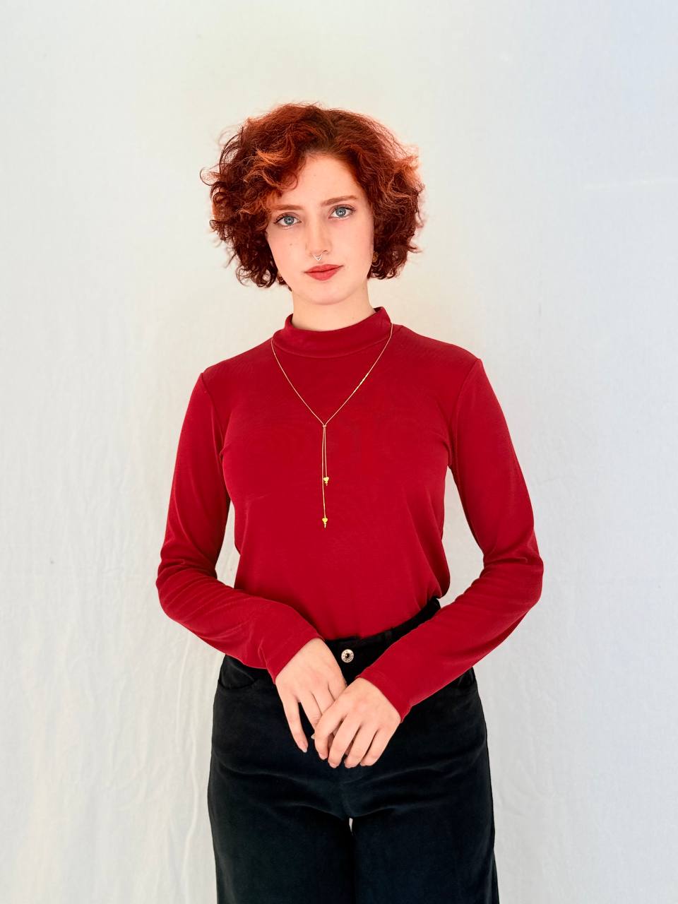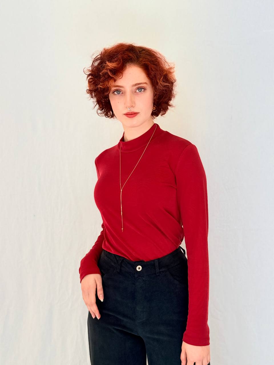 חולצת בייסיק רכה ונעימה, עם צווארון סירה אלגנטי שמחמיא לקו הצוואר ויוצר מראה נקי וקליל.