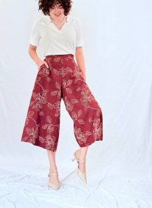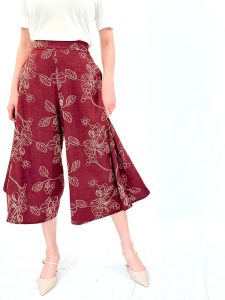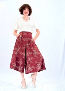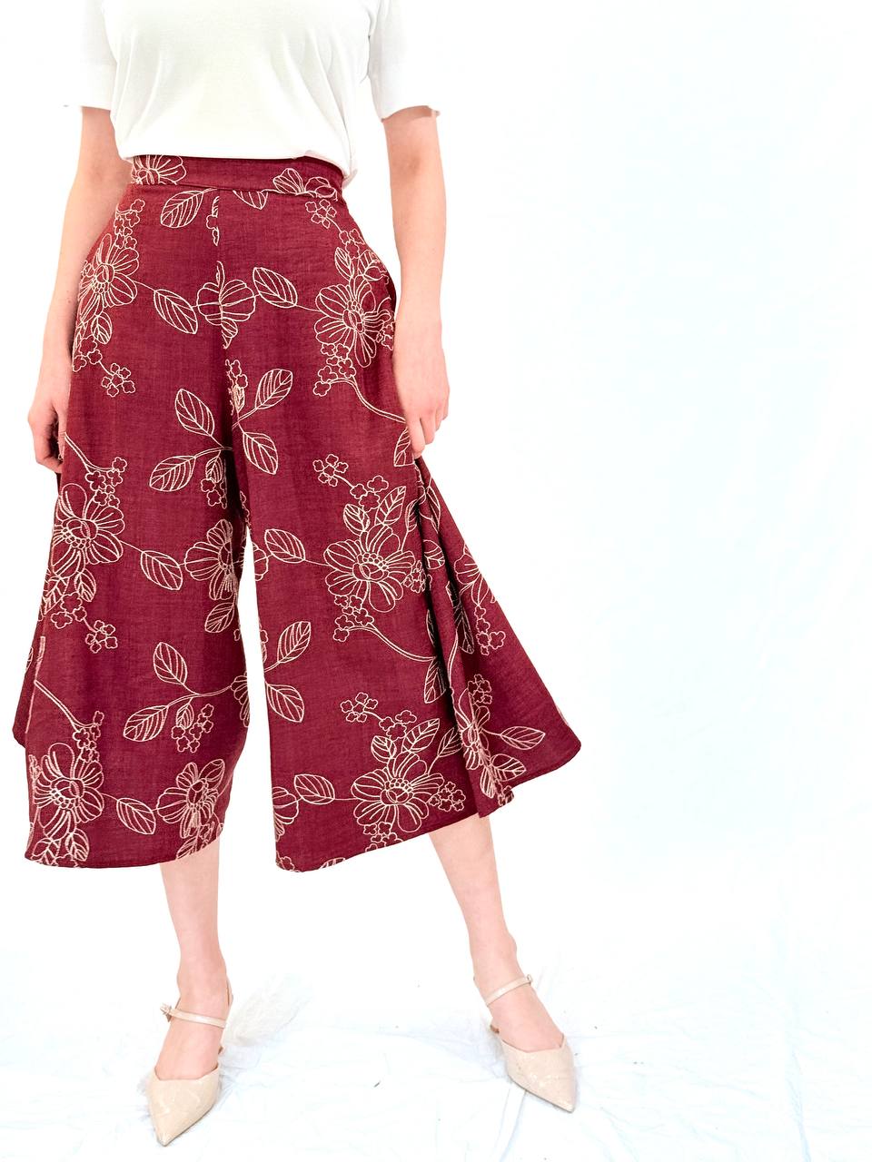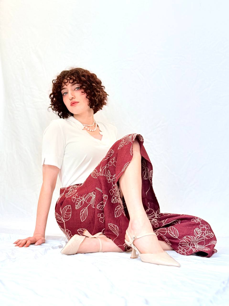 חצאית־מכנס בגזרת מידי רחבה עם הדפס פרחוני עדין, שילוב מושלם בין מראה נשי לאלגנטיות עם נוחות של מכנסיים.