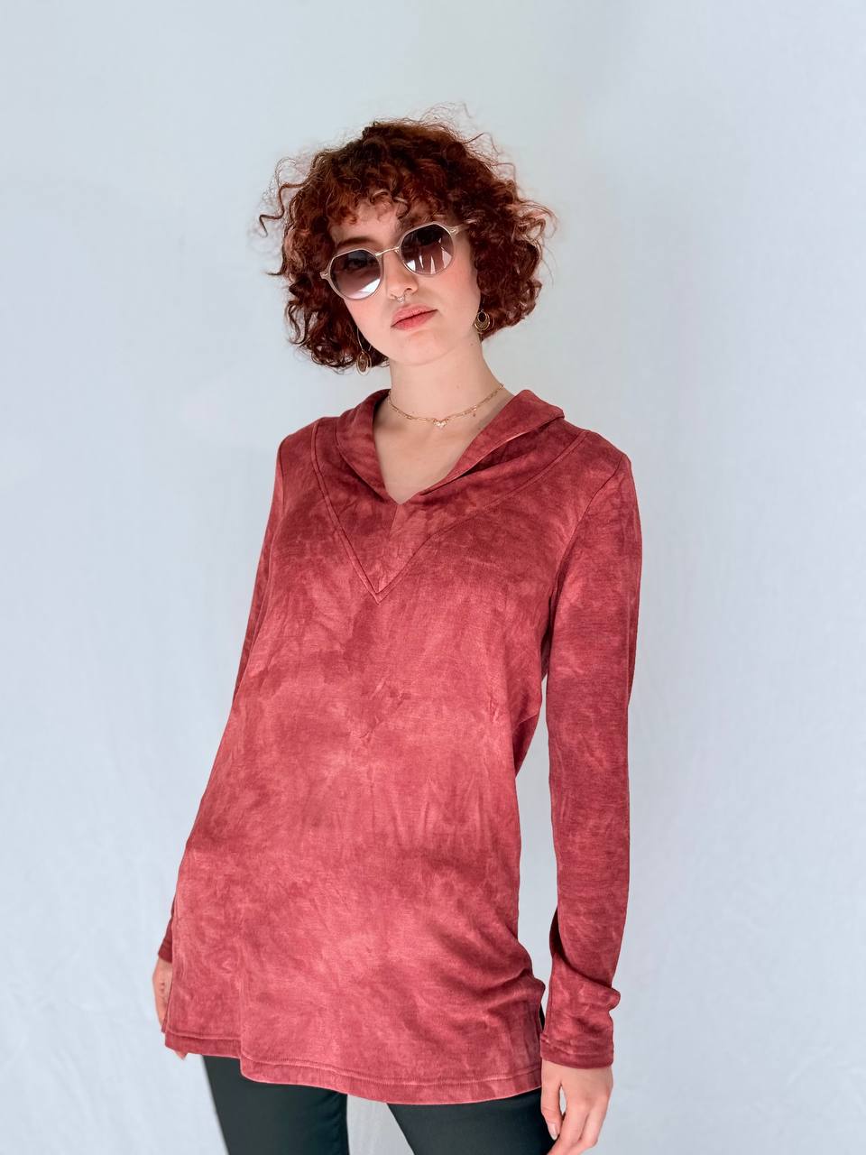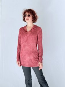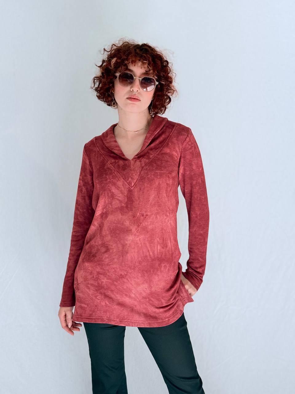 טוניקת סריג רכה עם הדפס עדין בגימור אמנותי.