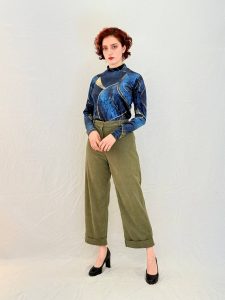 מקורדרוי רך ונעים, בגזרה גבוהה ורחבה שמחמיאה לכל מבנה גוף.