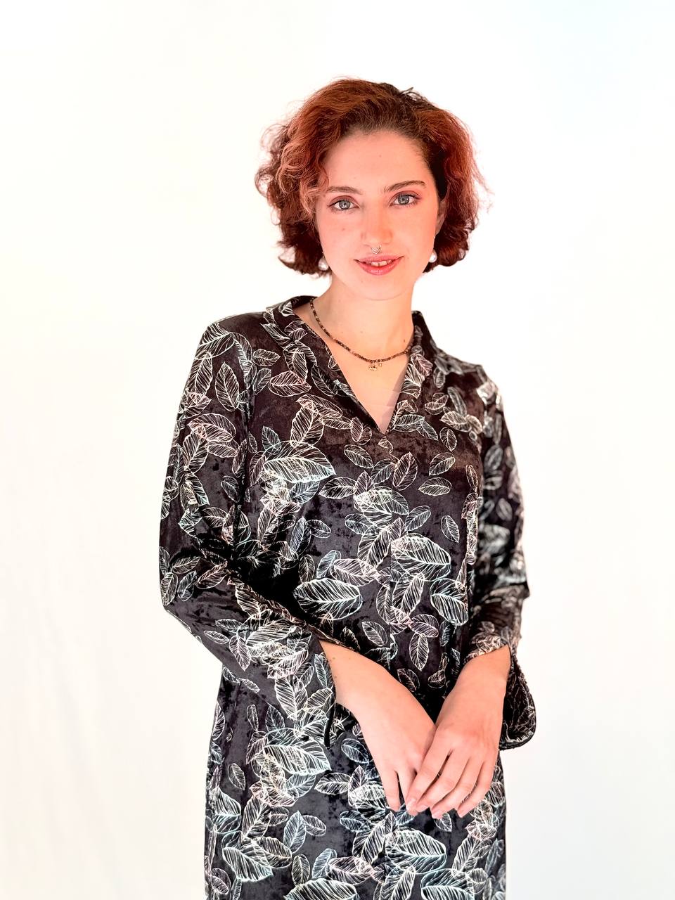 בד הקטיפה הנעים עוטף את הגוף ומעניק מראה אלגנטי וחמים, והגזרה הנקייה מאפשרת תנועה ונוחות לאורך כל היום.