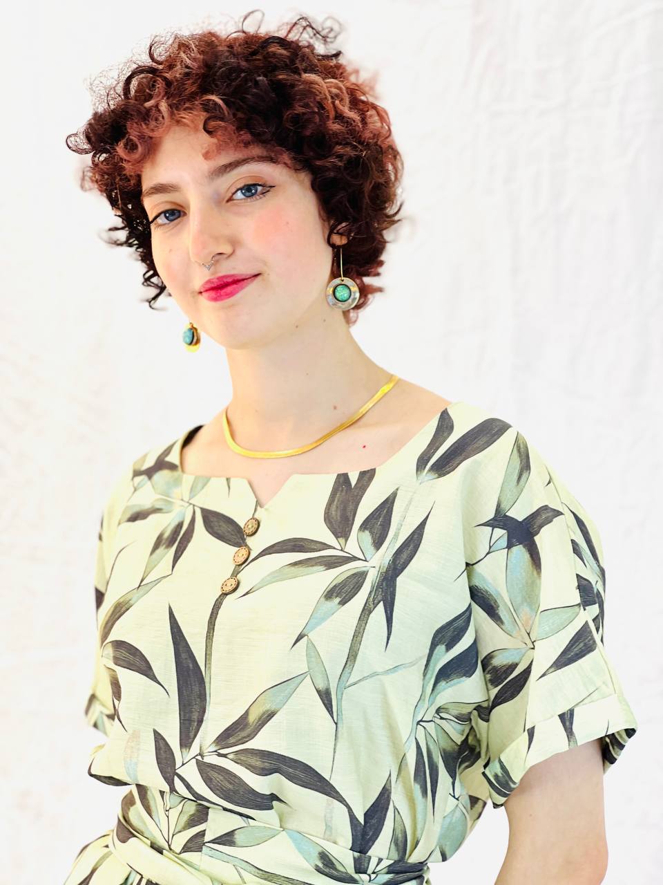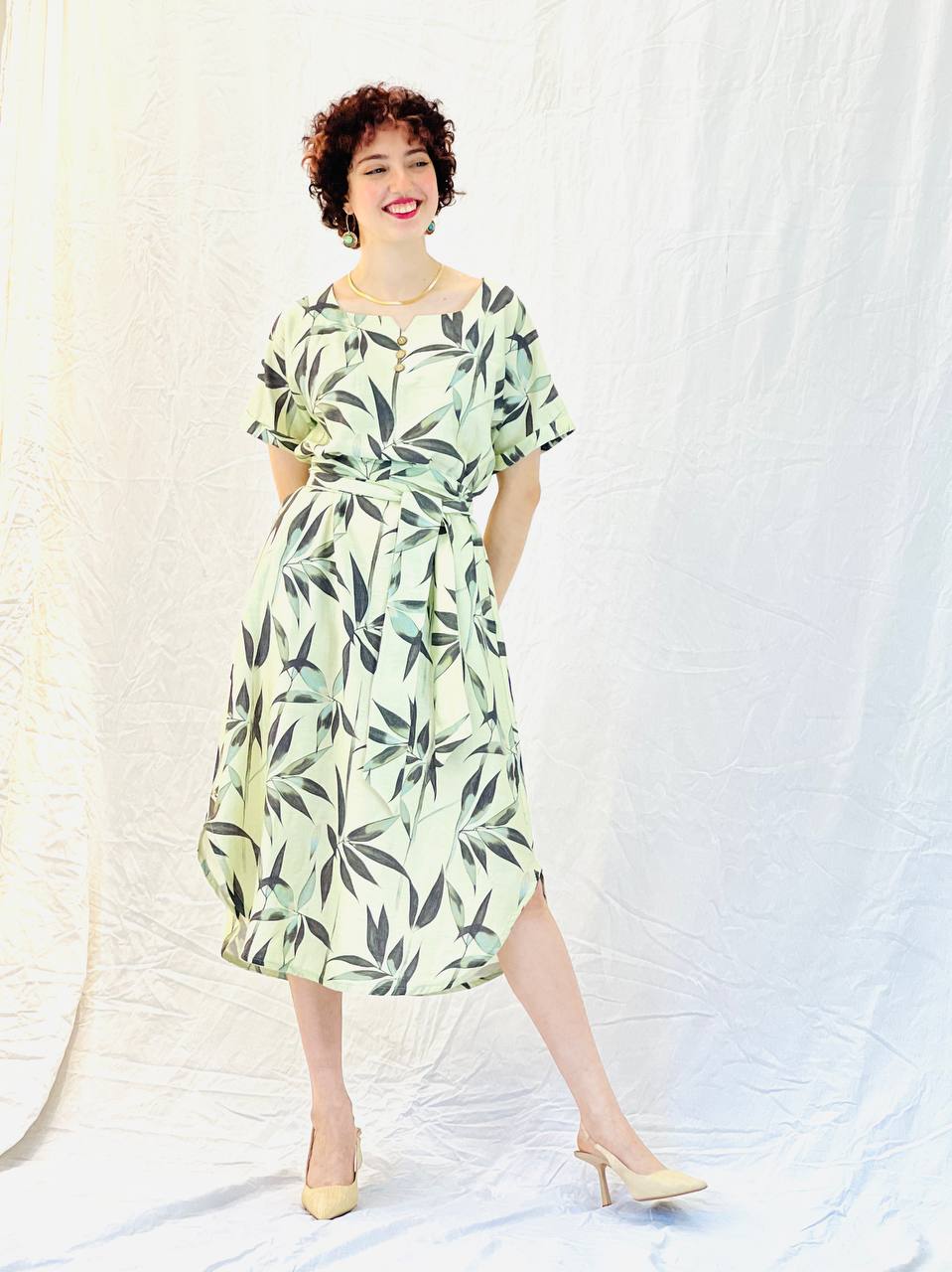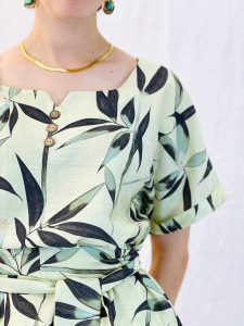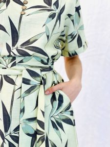 עשויה בד קליל ונעים למגע, עם הדפס עלים מודרני שמעניק לה מראה רענן ומתוחכם.