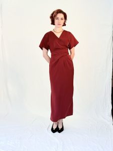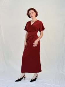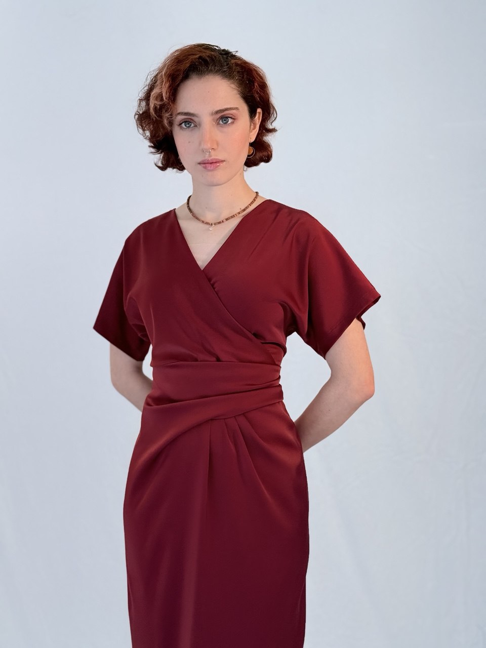 שמלת מעטפת ארוכה בקווים נקיים ומעודנים, עשויה בד סטאן רך ונשפך המעניק מראה אלגנטי ובלתי מתאמץ.
