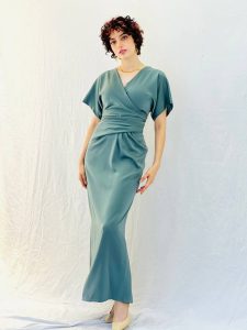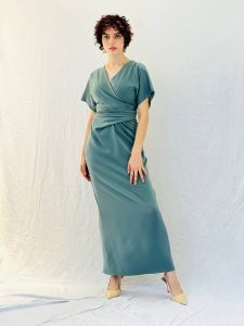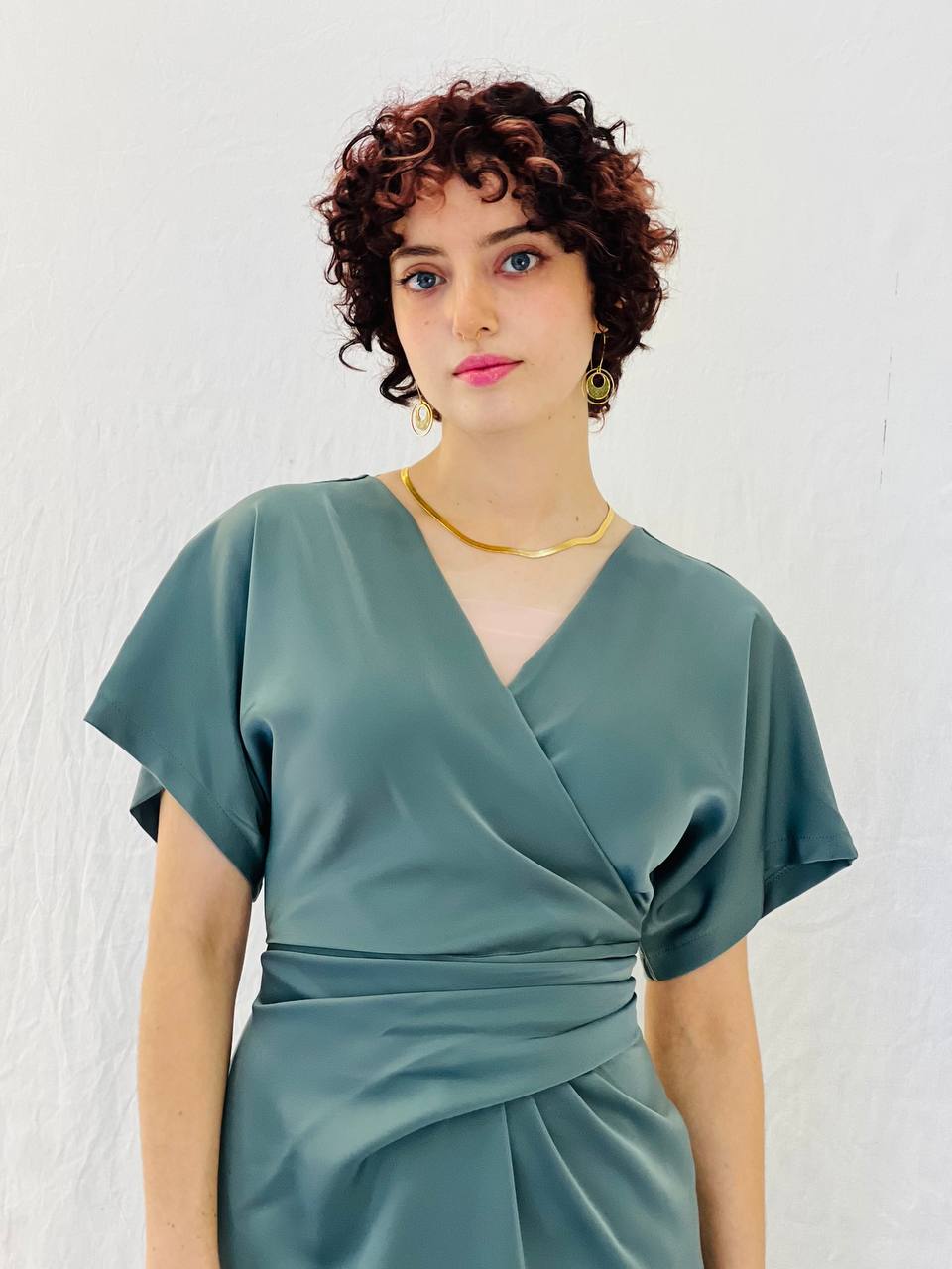 שמלת מעטפת ארוכה בקווים נקיים ומעודנים, עשויה בד סטאן רך ונשפך המעניק מראה אלגנטי ובלתי מתאמץ.