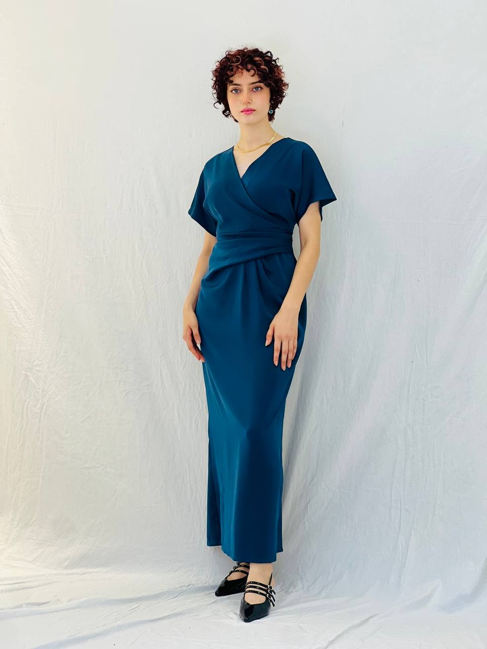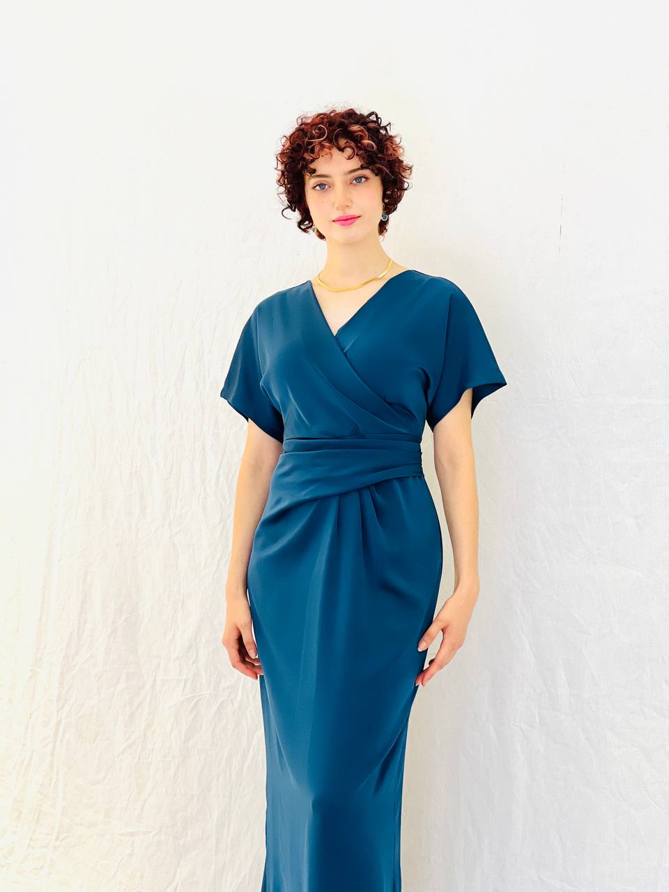 שמלת מעטפת ארוכה בקווים נקיים ומעודנים, עשויה בד סטאן רך ונשפך המעניק מראה אלגנטי ובלתי מתאמץ.