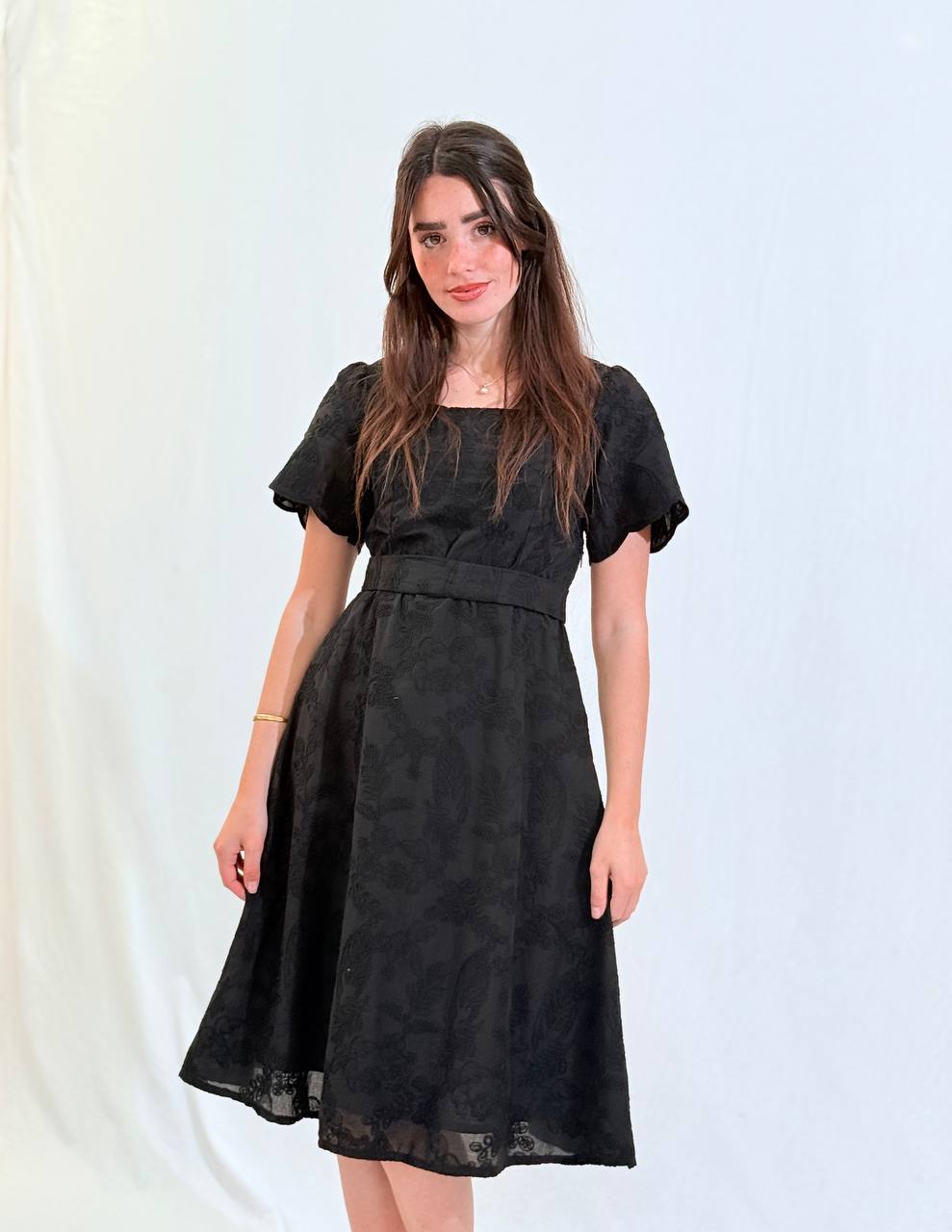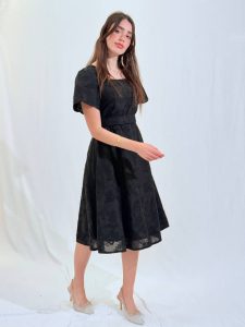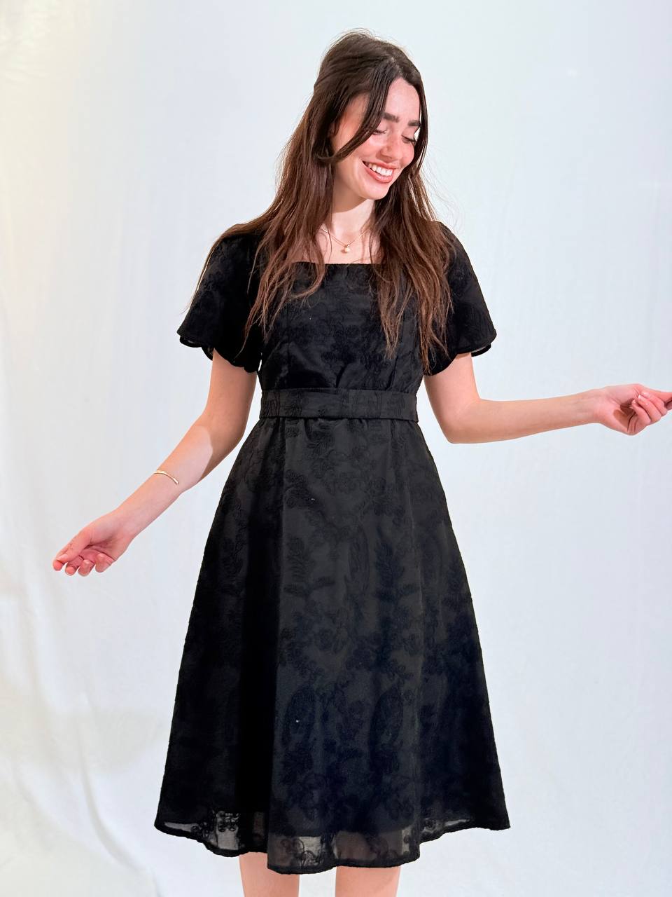 שמלת מידי מבד רקום עדין ונושם, בגזרת A מחמיאה.