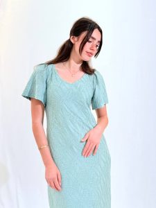 שמלה קלילה ונעימה מבד סריג רך עם טקסטורה עדינה.