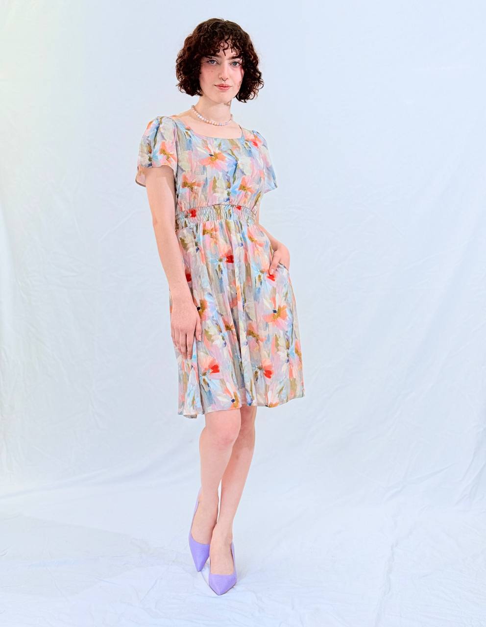 עשויה מבד ויסקוזה נושם עם הדפס פרחוני קליל – מושלמת ליום ולערב.