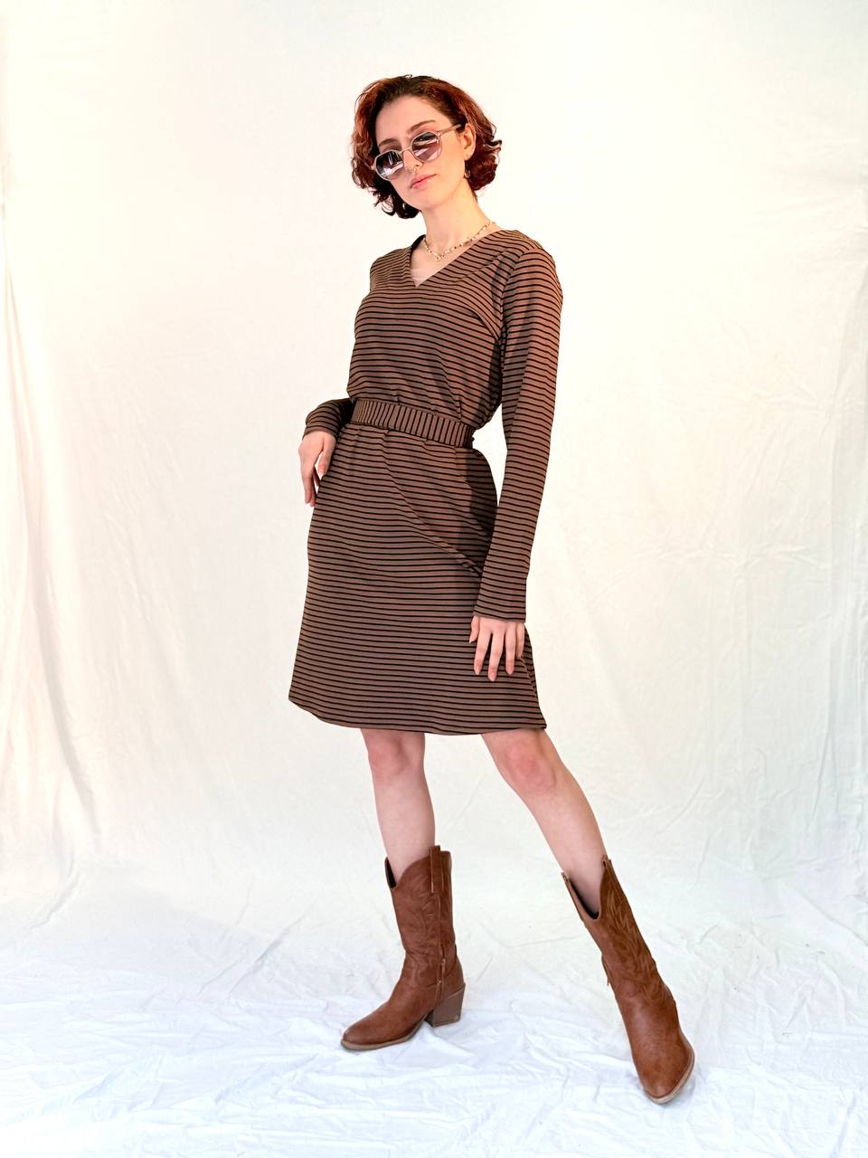 שמלה עם נוכחות רכה וטבעית, שמתאימה לחורף ולמעברים שבין יום לערב.