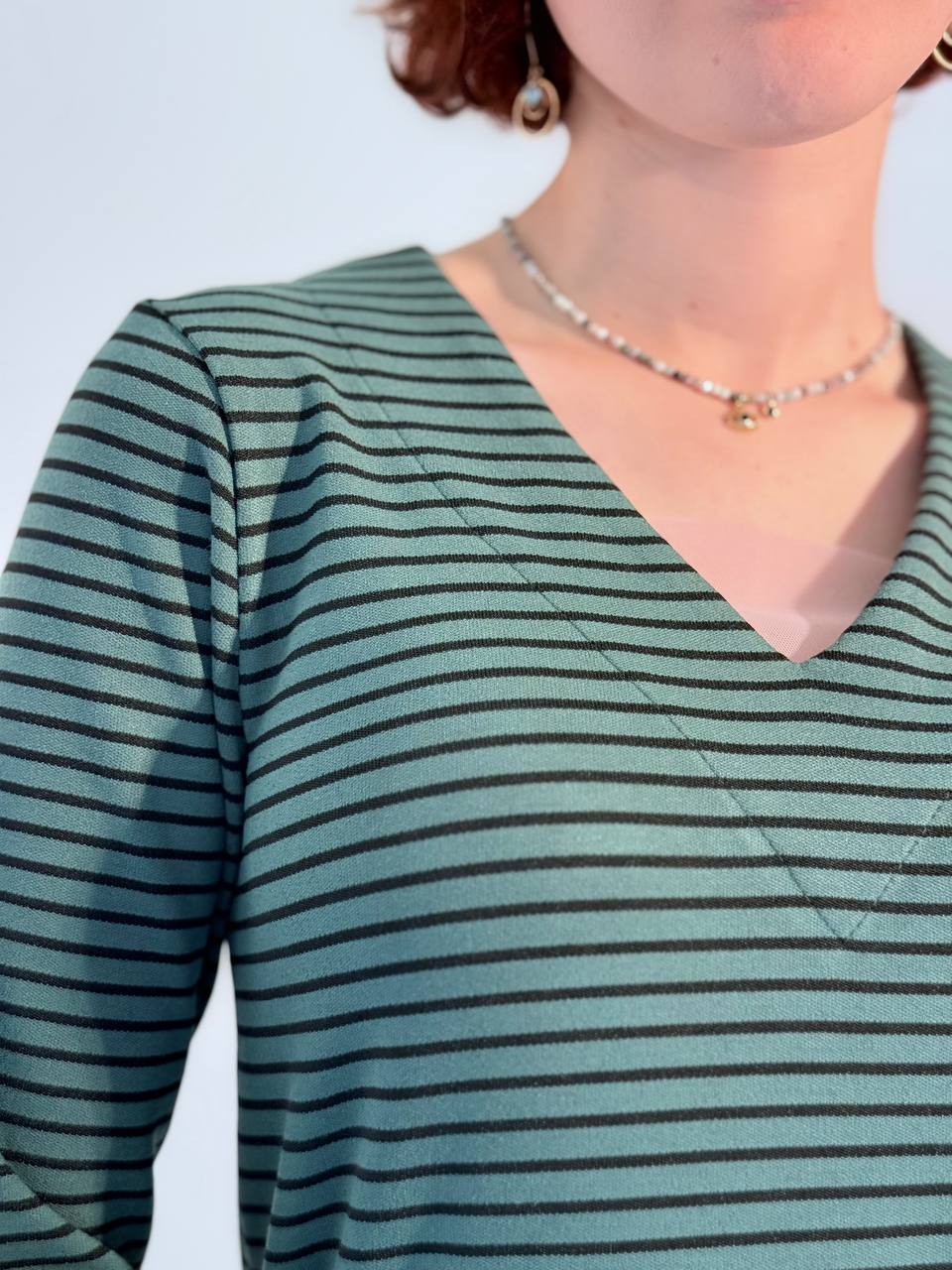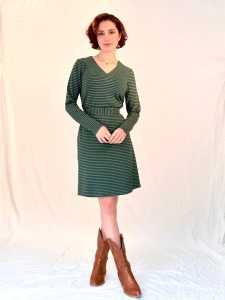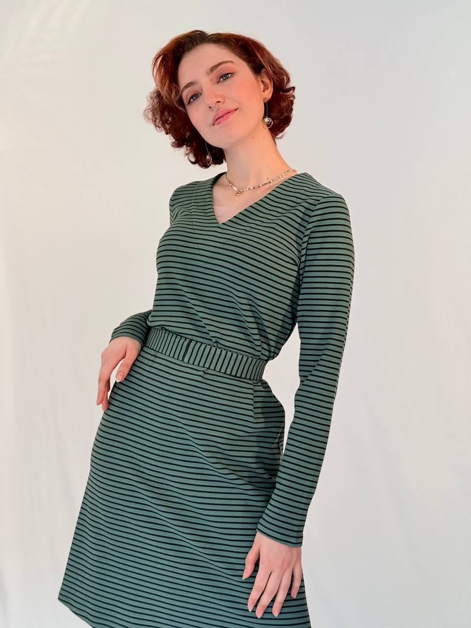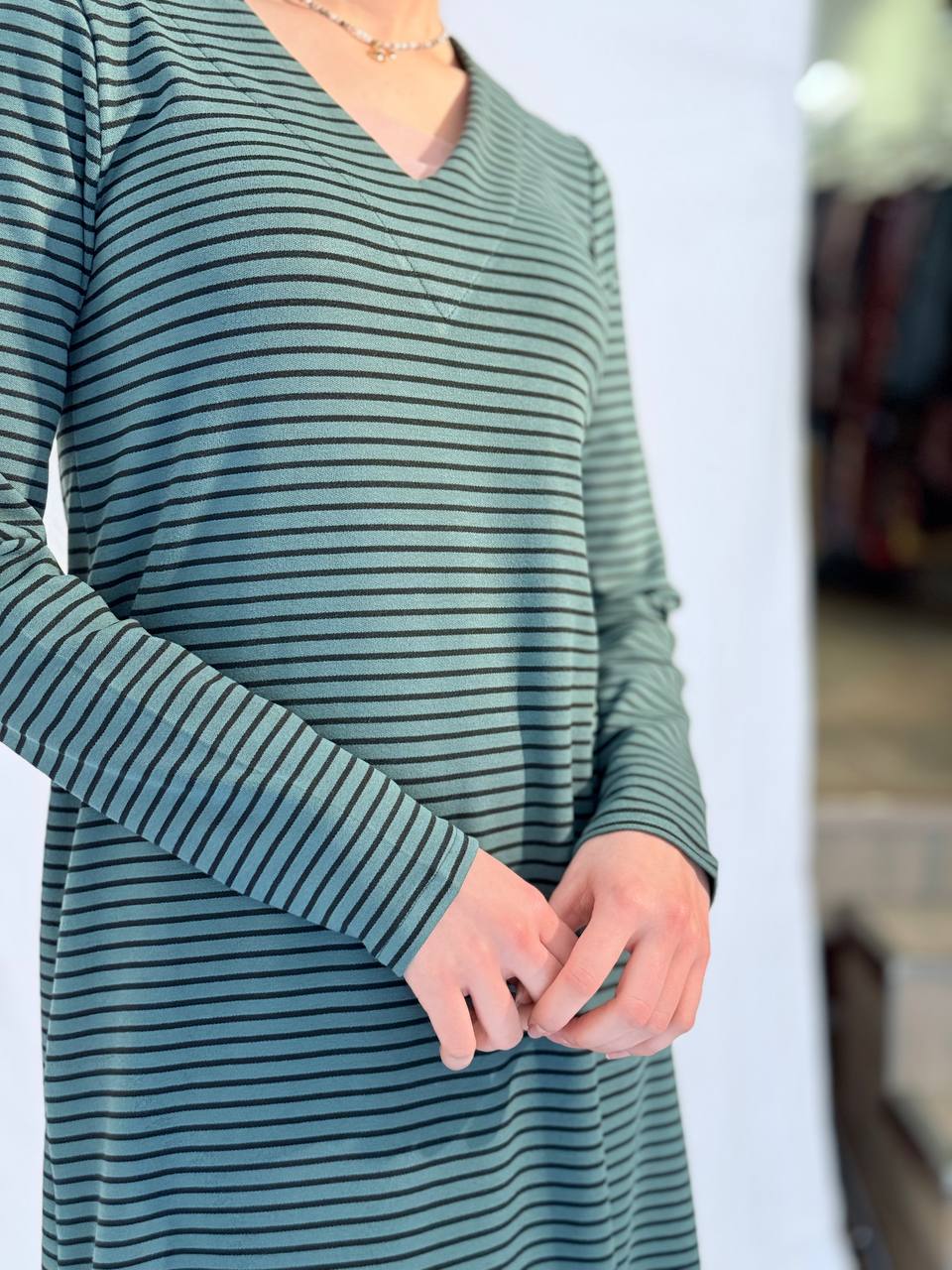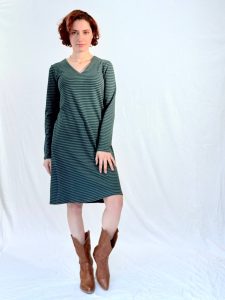 שמלת פסים מבד כותנה חורפי בגזרת A עם מפתח V רך ונשי.