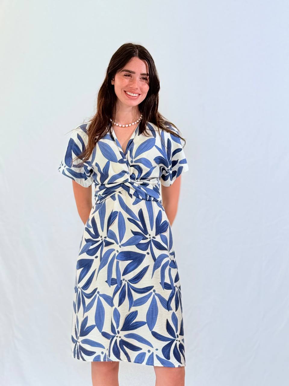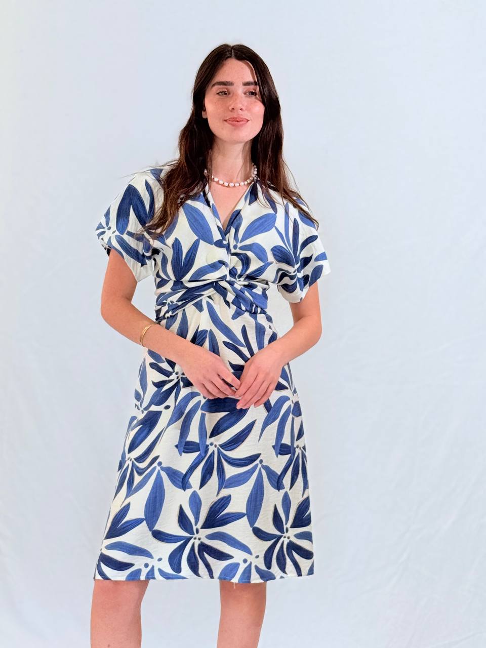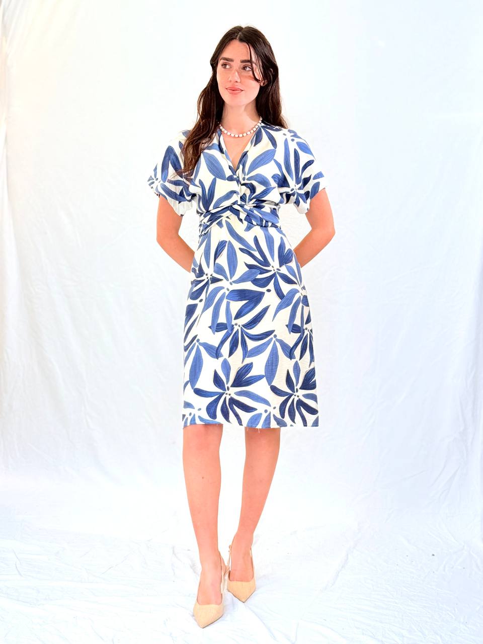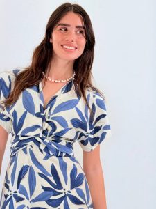 שמלה קלילה ונעימה מבד ויסקוזה נושם עם הדפס פרחוני עדין.