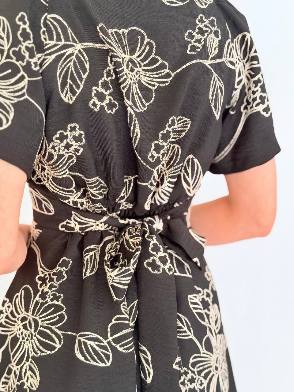 מפתח מעודן, שרוולים קצרים ושסע קדמי יוצרים תנועה טבעית ומראה מחמיא במיוחד.