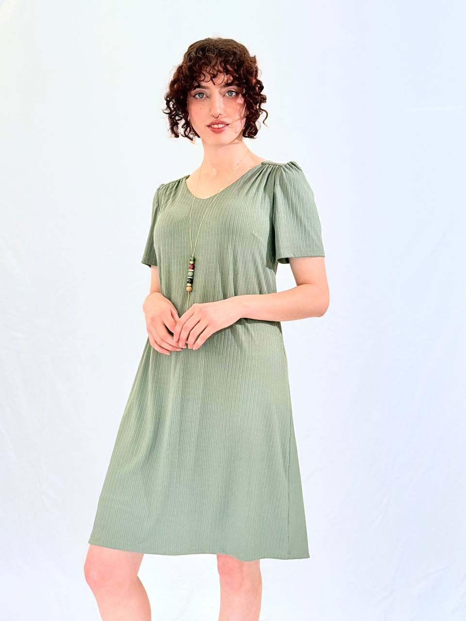 שמלת סריג קלילה ונעימה, בגזרת מידי מחמיאה.