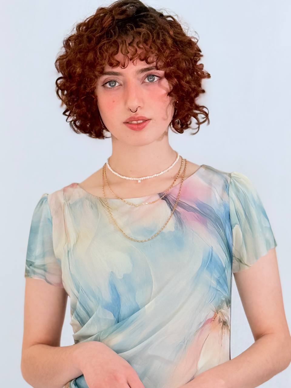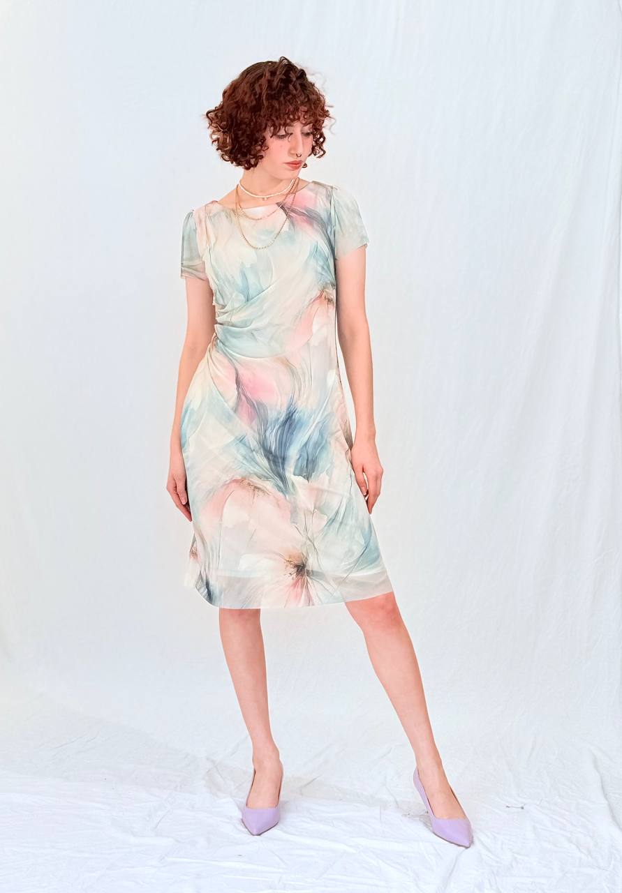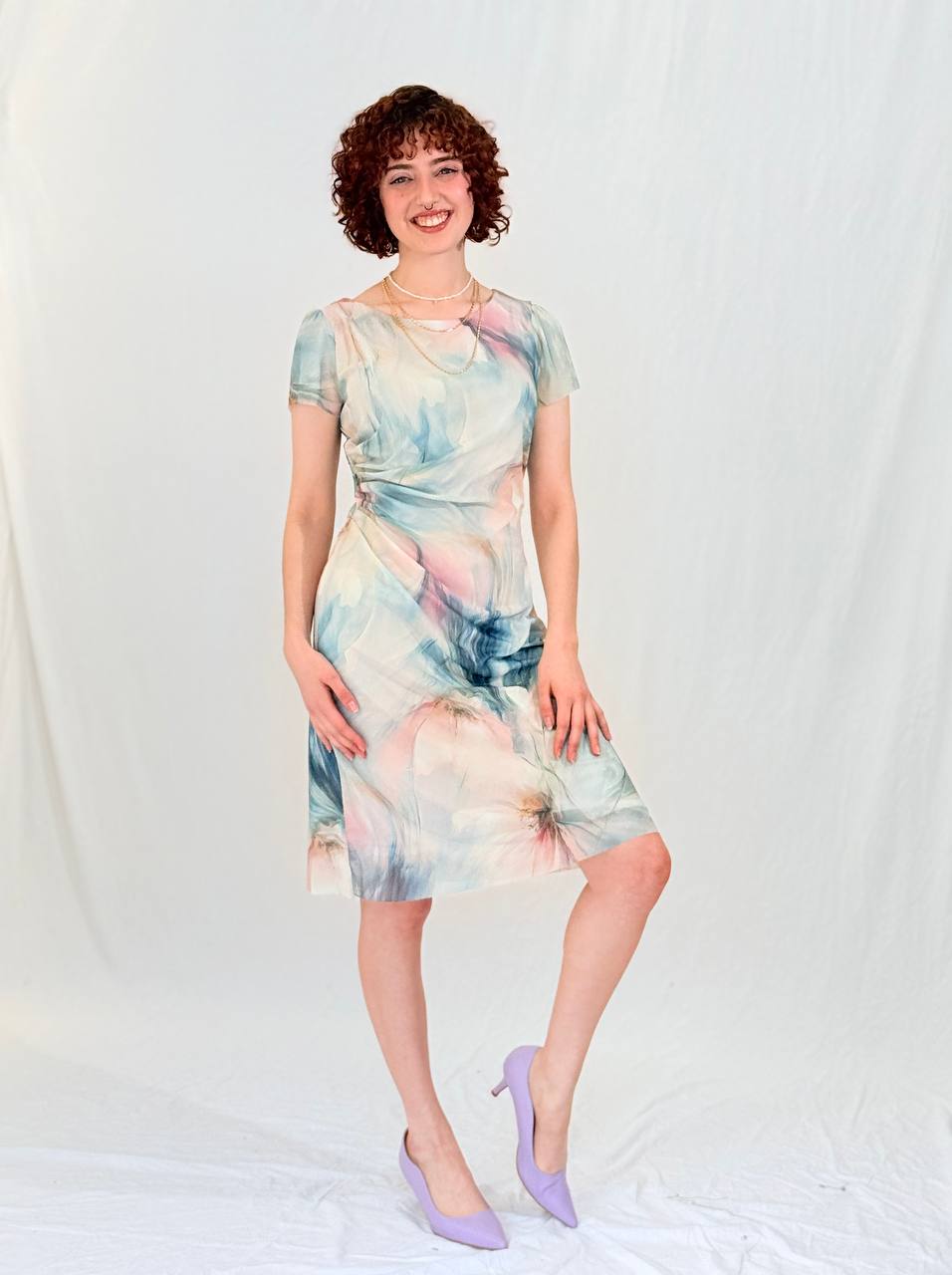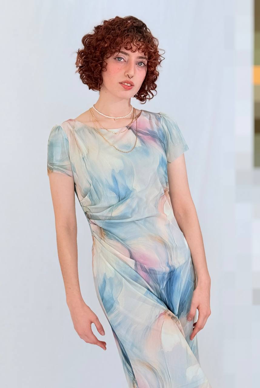 שמלה בקו נקי ונשי, עשויה משיפון לייקרה רך עם תנועה טבעית על הגוף.