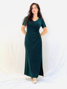 השמלה שתגרום לך להרגיש כמו כוכבת. שמלת מקסי ארוכה וצמודה בגזרה מחמיאה ומעוצבת, עם קפלים עדינים בצד שמעניקים טוויסט ייחודי ומטשטשים את הבטן.
