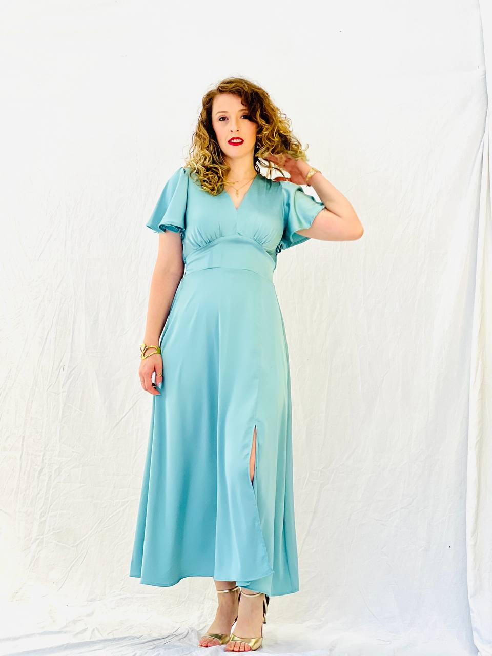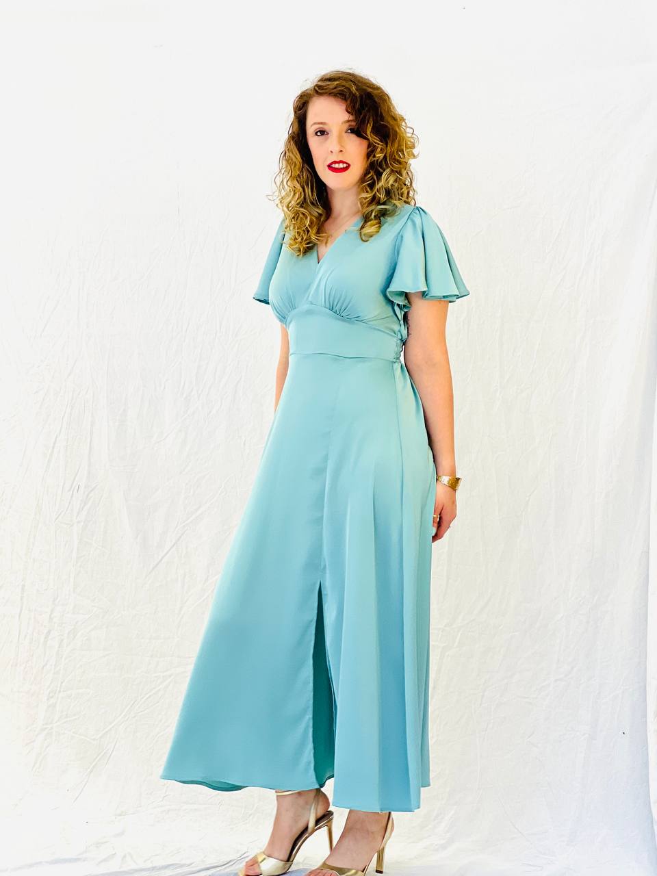 שמלה קלילה, רומנטית ונשית במיוחד, עשויה בד סאטן.